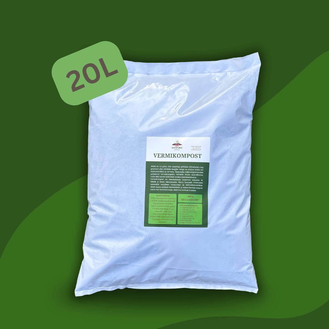 Pakendatud kvaliteetne vermikompost.Pakend: 20 L